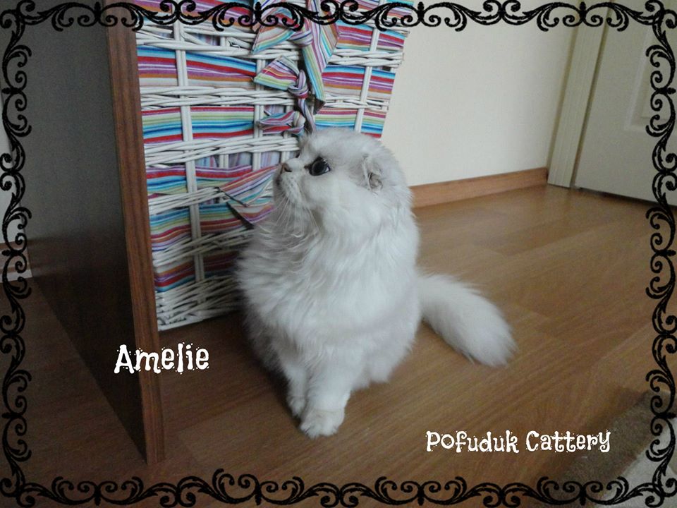 Evimizin kraliçesi Amelie Almanya'dan gelmiş olup 6 Mart 2013 doğumludur. Kızımızın kürk rengi siyah gümüş gölgeli(silver black shaded) renkte, gözleri deniz mavisi(aquamarine) ve sürmeli, ağzı burnu sürmeli olup patileri de siyahtır. Kocaman iri gözleri, kıvrık kulakları ve yuvarlak bir yüzü vardır. Peluş gibi uzun tüyleri de kızımızın güzelliğine güzellik katmaktadır. Kızımız silver kedilerde nadir bulunan mavimsi yeşil gözlere sahiptir. Bu göz rengi dünyada nadir bulunmakta olup çok kıymetlidir. Kızımız katıldığı uluslararası kedi yarışmasında ırkının en iyi strandartlarını taşıyan ve yarışmadaki en güzel kedi seçilmiştir. Mükemmel standartlarda olduğu Almanya'dan gelen hakemler tarafından tescillenmiştir.